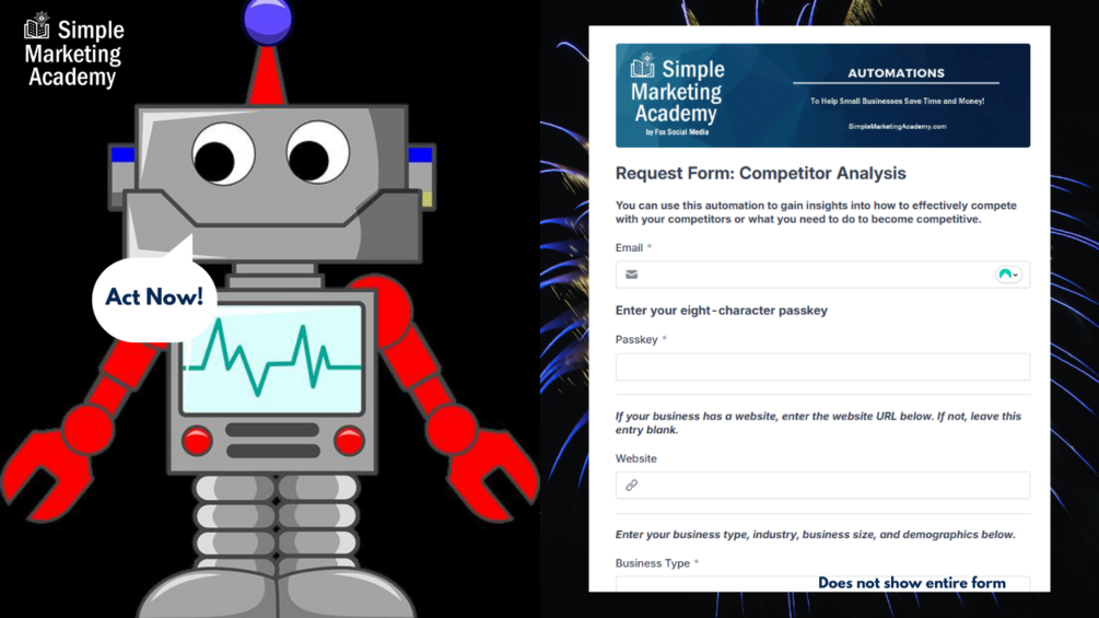 This automation helps you compete effectively by providing a tailored report. If you have a website, it compares you to competitor websites. If not, it offers strategies for competing in your industry, business type, and target demographics.